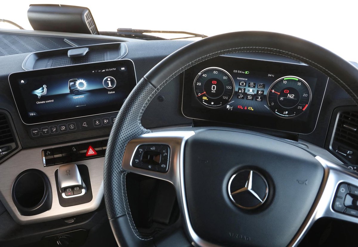 Multimedia cockpit Truck navigation Digital radio Driver's suspension seat, comfort Fold-up co-driver's seat Air conditioning system Windscreen, tinted, with filter band
