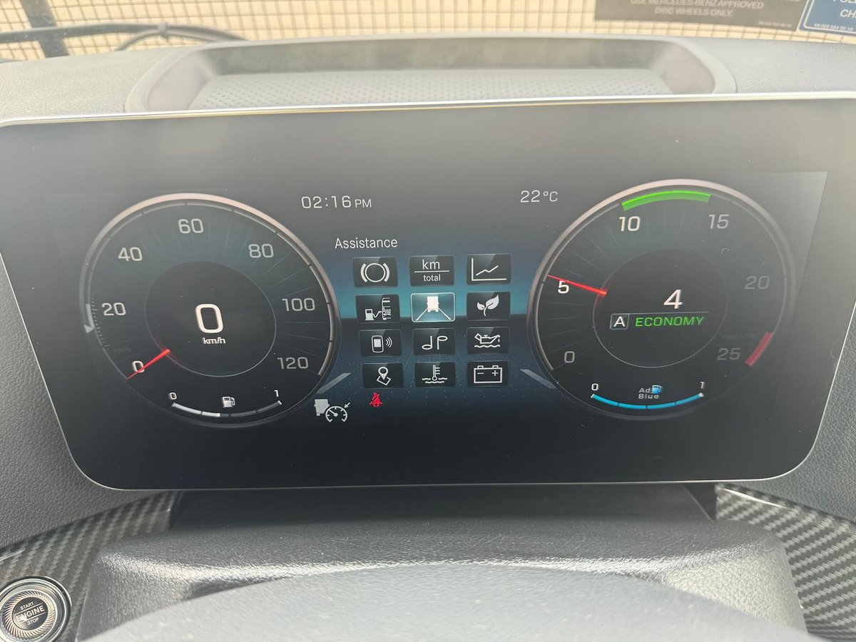Safety and assistance systems • Safety package, inclusive of: Active Brake Assist 5, Attention Assist, Proximity Assist, Lane Assist • Active Drive Assist • Stability Control Assist (ESP) • LED headlamps • Fog lamps, LED daytime running lamps with corner light function • LED tail lights • Rain / light sensor • Driver’s airbag • Reverse warning combined with hazard warning lights • Electronic braking system with ABS and ASR • Disc brakes on front and rear axle • Parking brake, acoustic warning • Independent trailer brake, electronic • Flashing brake lights during emergency braking